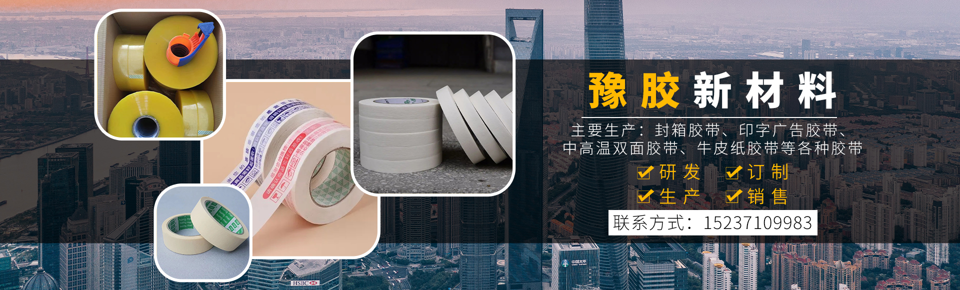 河南豫膠新材料科技有限公司,廠區(qū)占地2萬(wàn)平方米,員工200余人,我公司是一家集研發(fā)、訂制、生產(chǎn)、銷售為一體的綜合型企業(yè)。主要生產(chǎn):封箱膠帶、印字廣告膠帶、海綿膠帶、中高溫雙面膠帶、中高溫美紋紙膠帶、牛皮紙膠帶、等各種膠帶。公司落在歷史悠久、文化深遠(yuǎn)、風(fēng)景秀麗的河南省省會(huì)--鄭州,現(xiàn)在的鄭州是整個(gè)中原崛起計(jì)劃的腹地,經(jīng)濟(jì)發(fā)達(dá),交通便利。公司秉承"顧客至上,銳意進(jìn)取"的經(jīng)營(yíng)理念,堅(jiān)持"客戶優(yōu)先"的原則為廣大客戶提供優(yōu)質(zhì)的服務(wù)。歡迎惠顧!